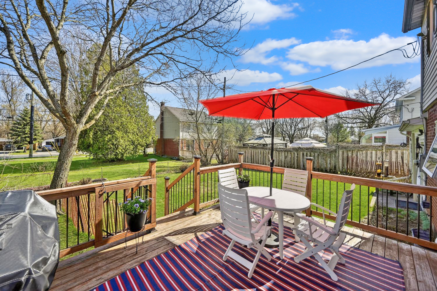 The front deck offers a welcoming spot to relax and enjoy the warmer months. Step inside to a bright foyer with original hardwood floors that carry into the spacious living room, filled with natural light. The dining area features patio doors leading to the rear deck with gate and partially fenced yard (would not be hard to fully fence the yard), making it easy to entertain or keep an eye on kids and pets.