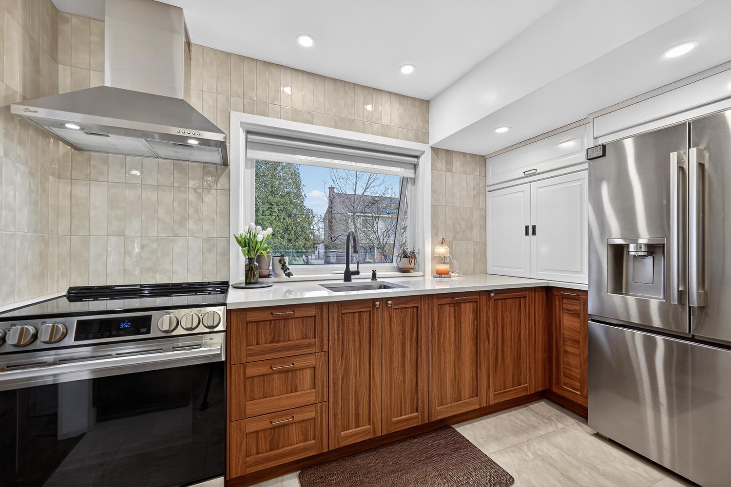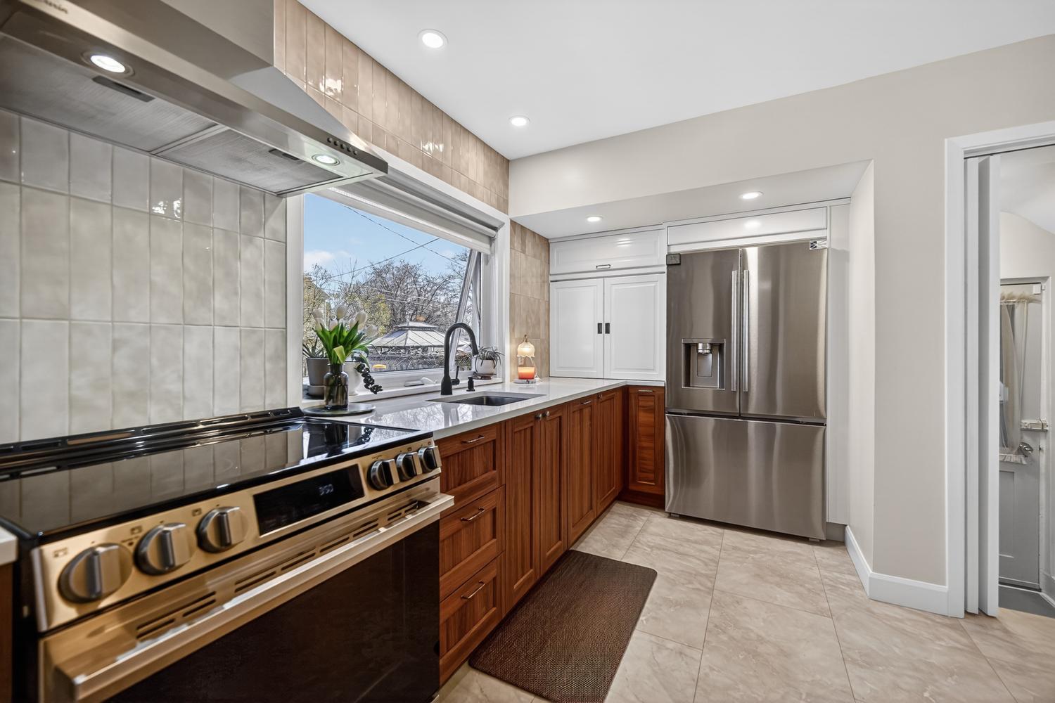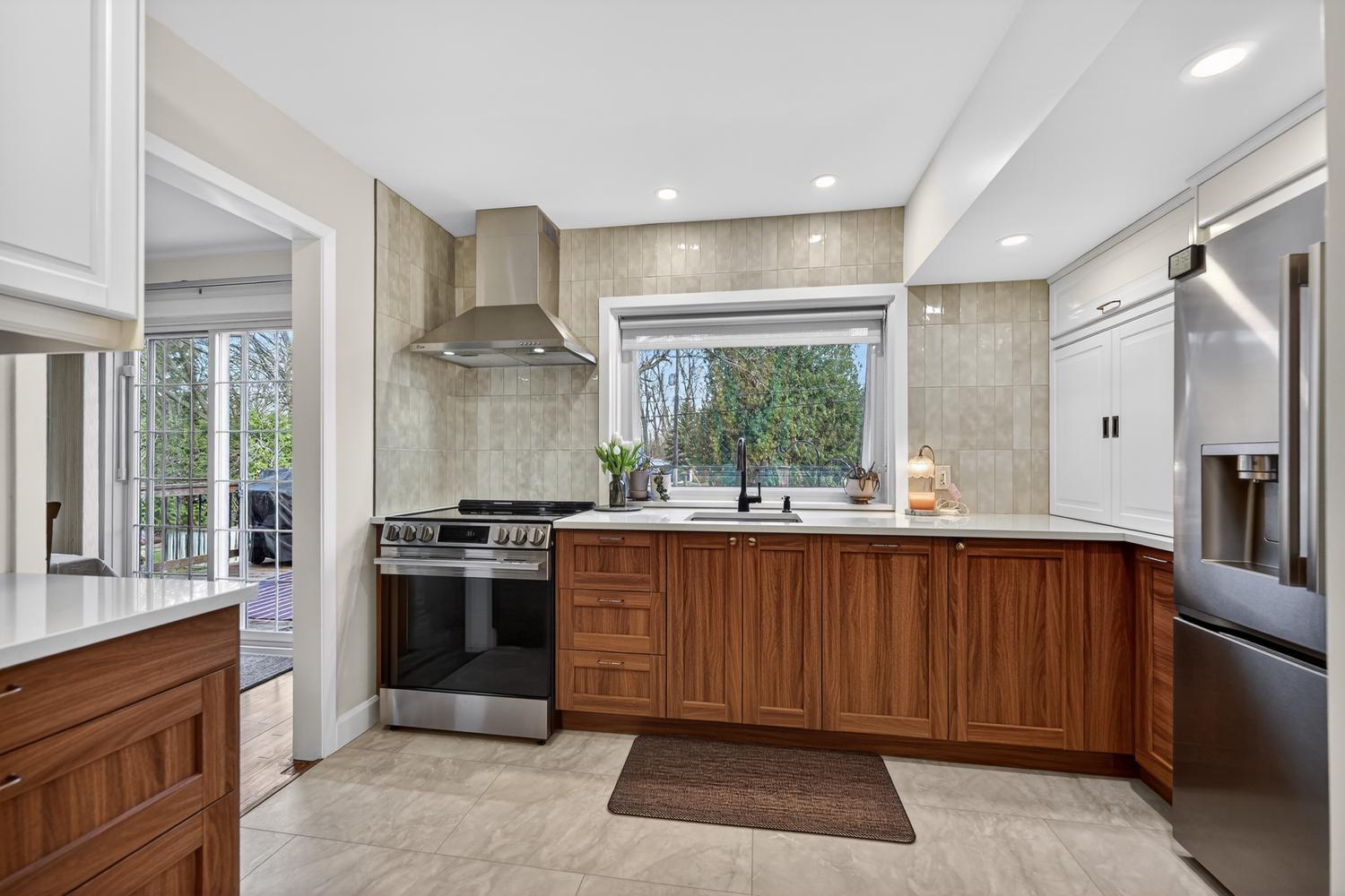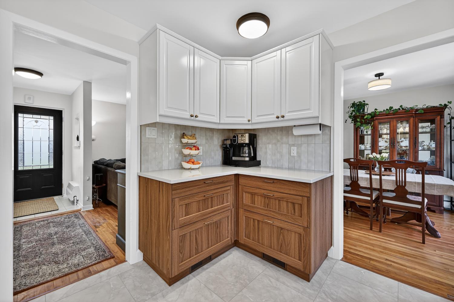 Just off the dining room is the updated kitchen, thoughtfully designed with modern countertops, an improved layout, and newer appliances included—making great use of the space.