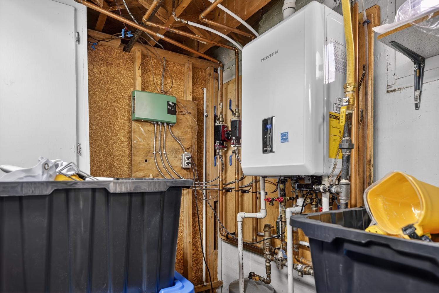 Fridge, fridge in basement, stove, dishwasher, washer, (gas) dryer, on-demand gas hot water heater, surge protector for heat pump, back up battery for sump pump