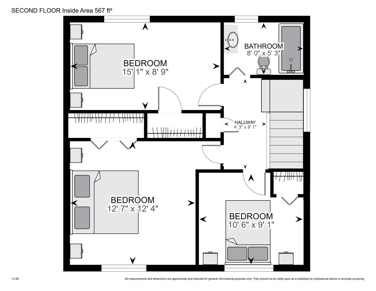 Upstairs, you’ll find a generous primary bedroom with room for a king-sized bed and additional furniture, along with two more bedrooms and a full 4-piece bathroom.